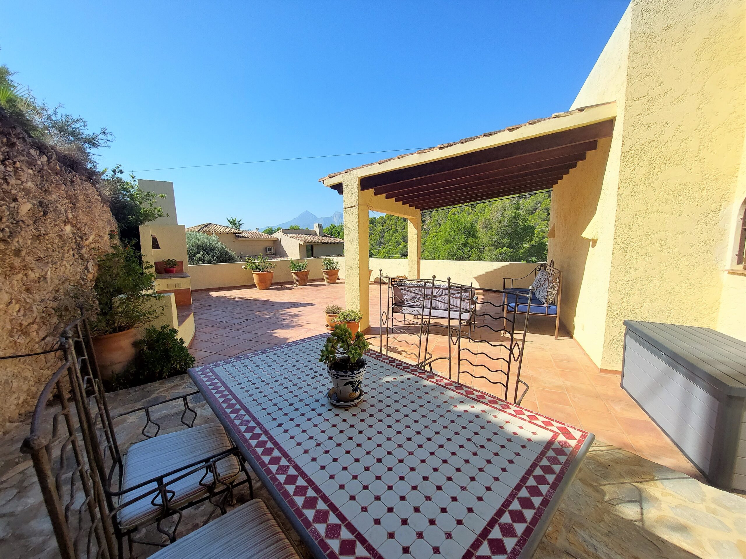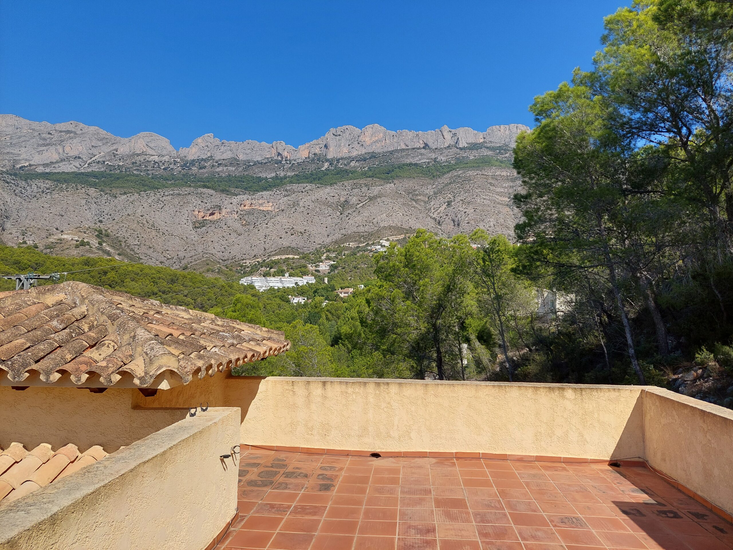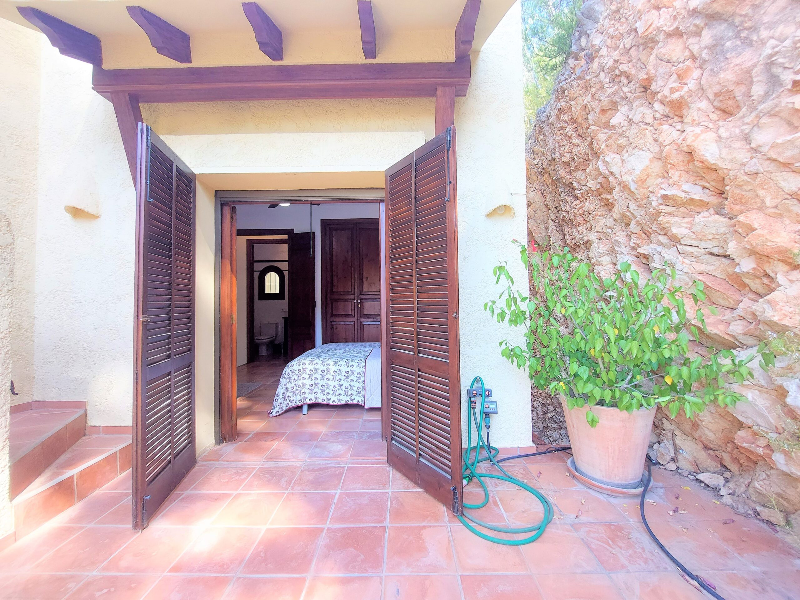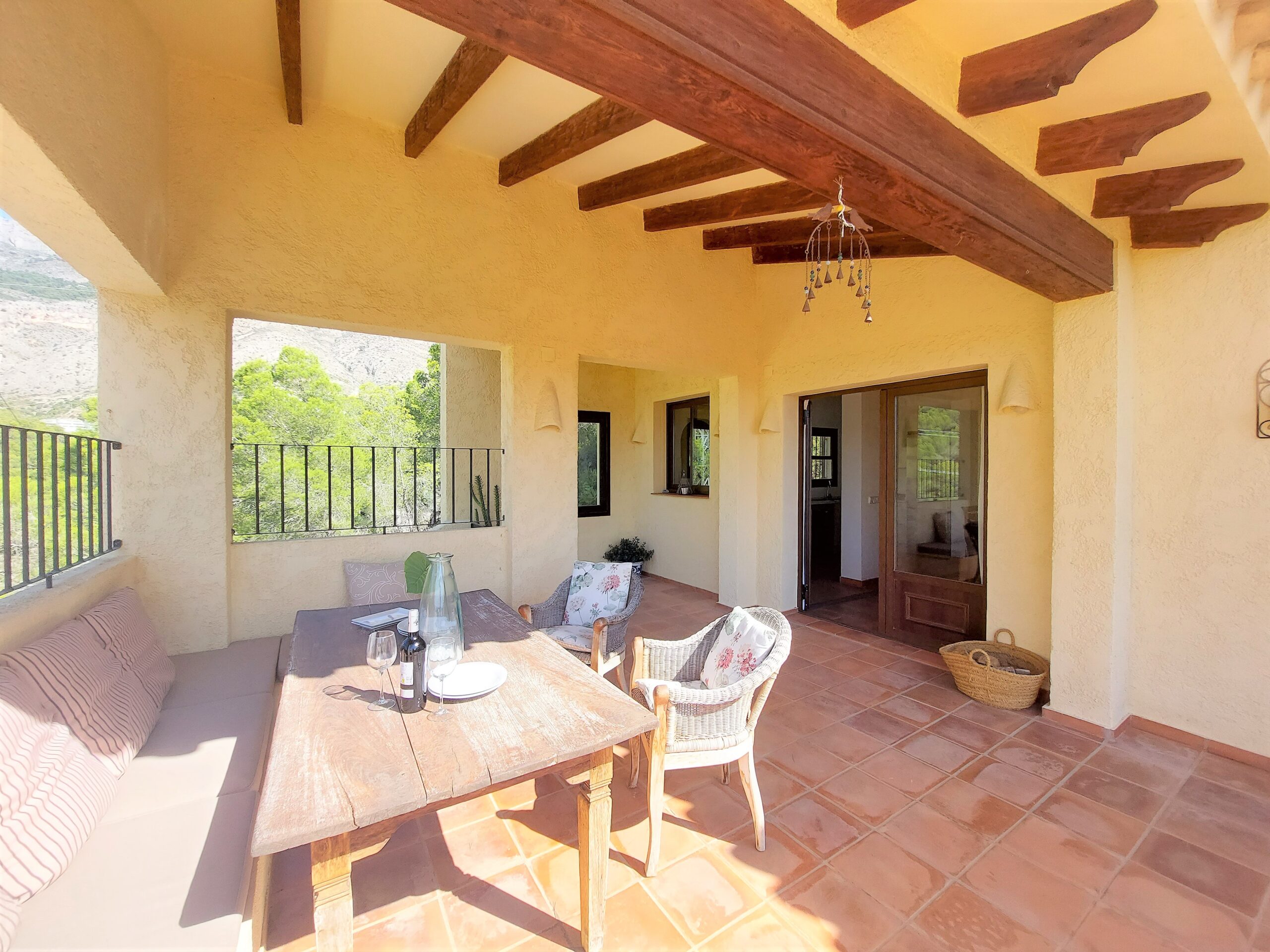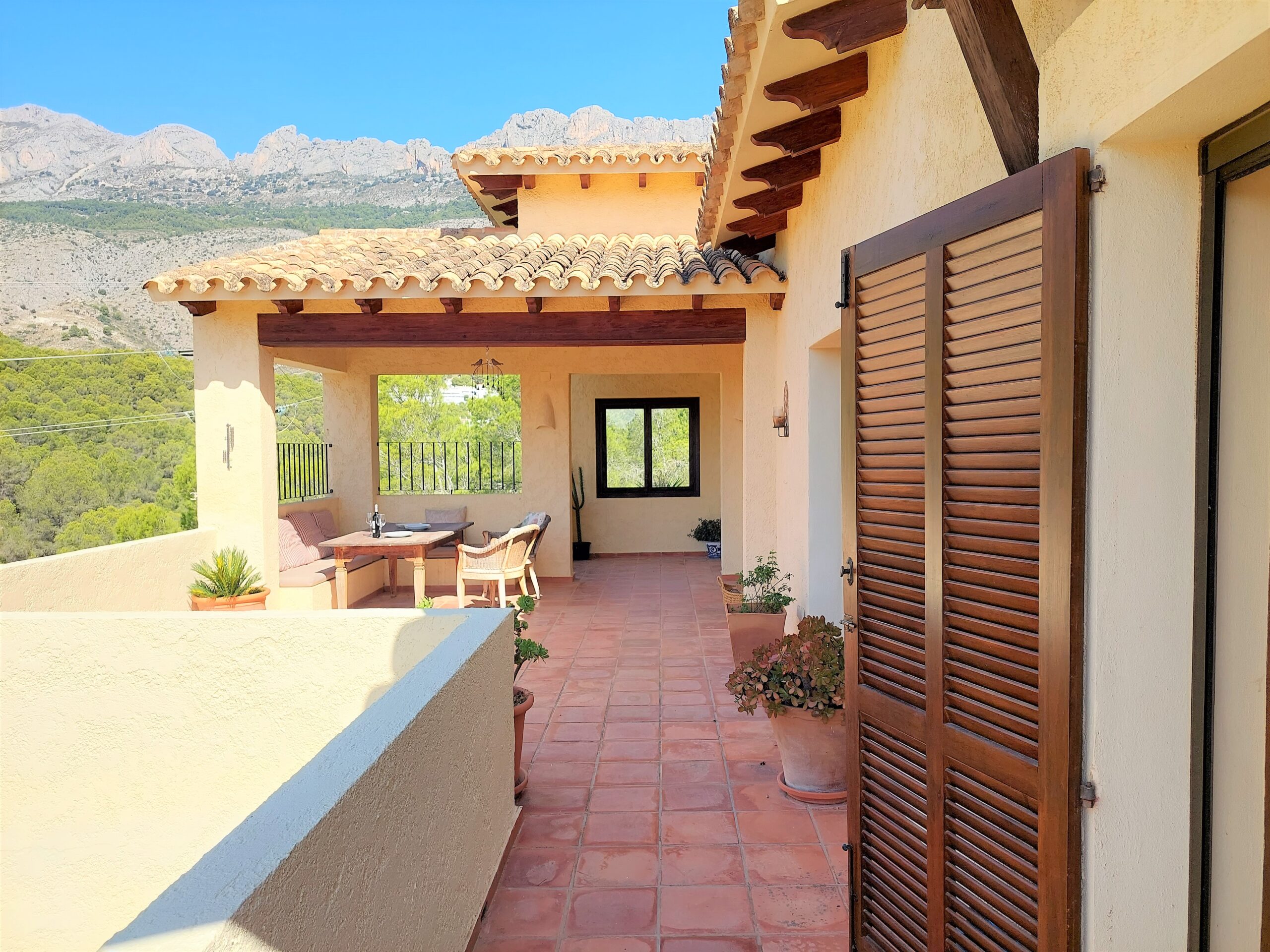 W tym otoczeniu natury i bliskości Altea la Vella, willa oferuje zarówno prywatność, jak i spokój. Główny dom posiada salon z kominkiem, otwartą kuchnię i dostęp do dużego tarasu. Posiada dwa podwójne pokoje i dwie łazienki, z których jedna jest typu en suite. Obie sypialnie mają bezpośredni dostęp do tarasów. Taras biegnie wzdłuż domu, więc jest bardzo wszechstronny, oferuje zarówno słońce, jak i cień, miejsca rekreacji, grill, przestrzenie do relaksu i czytania lub delektowania się śniadaniem lub lunchem, zawsze z bezpośrednim dostępem do domu lub sypialni, oraz z pięknym widokiem na Sierra w Altea La Vella.