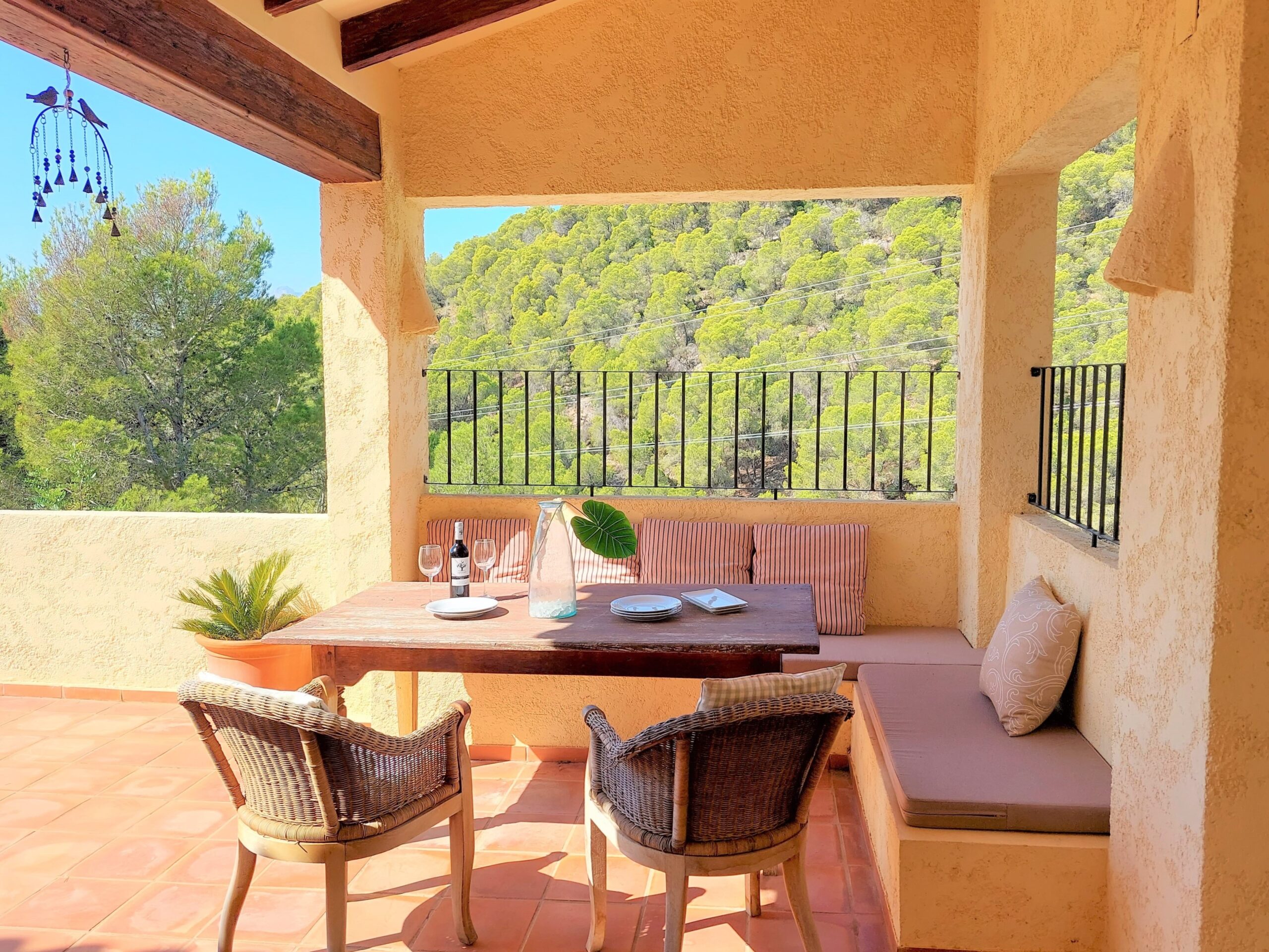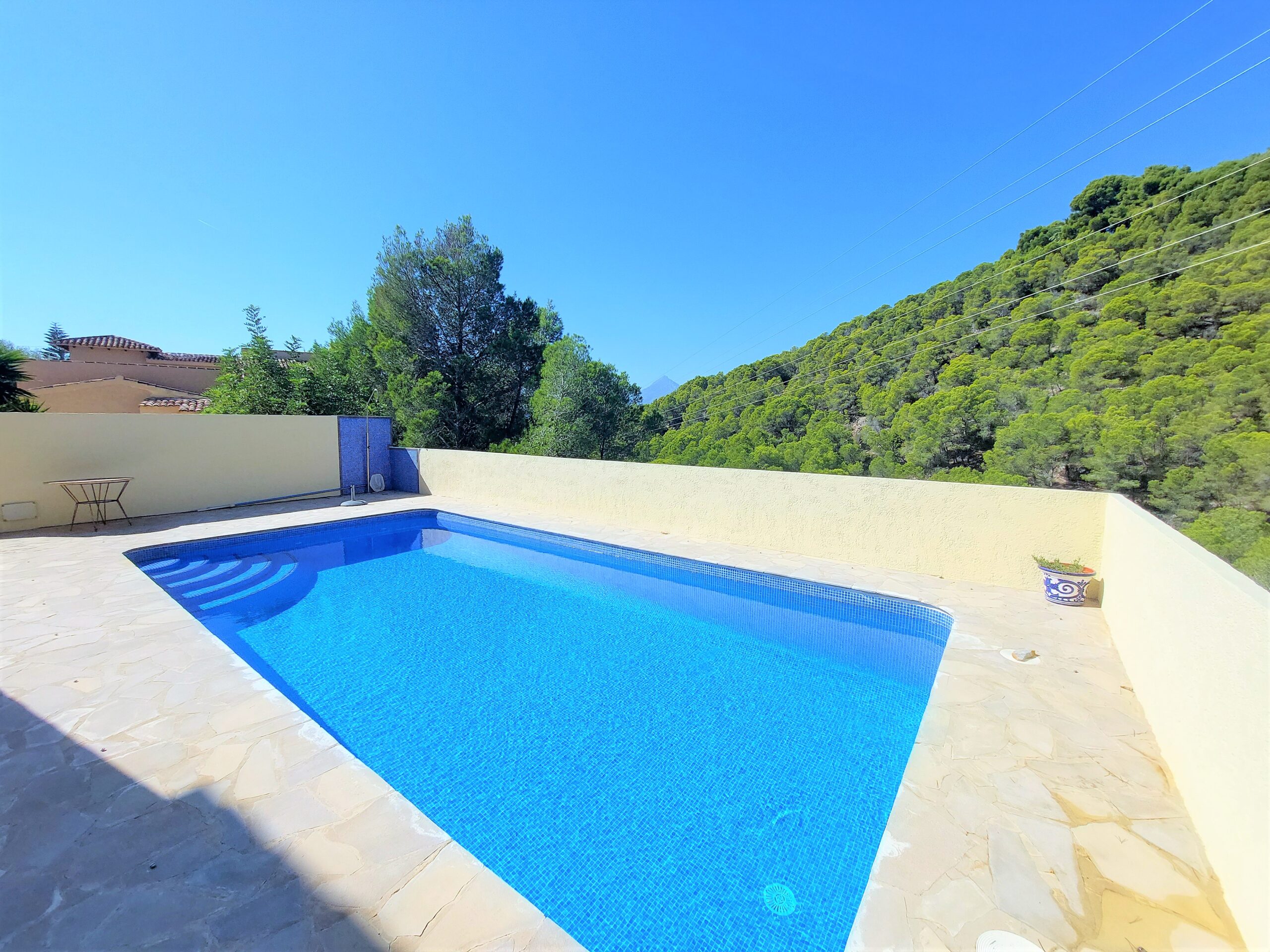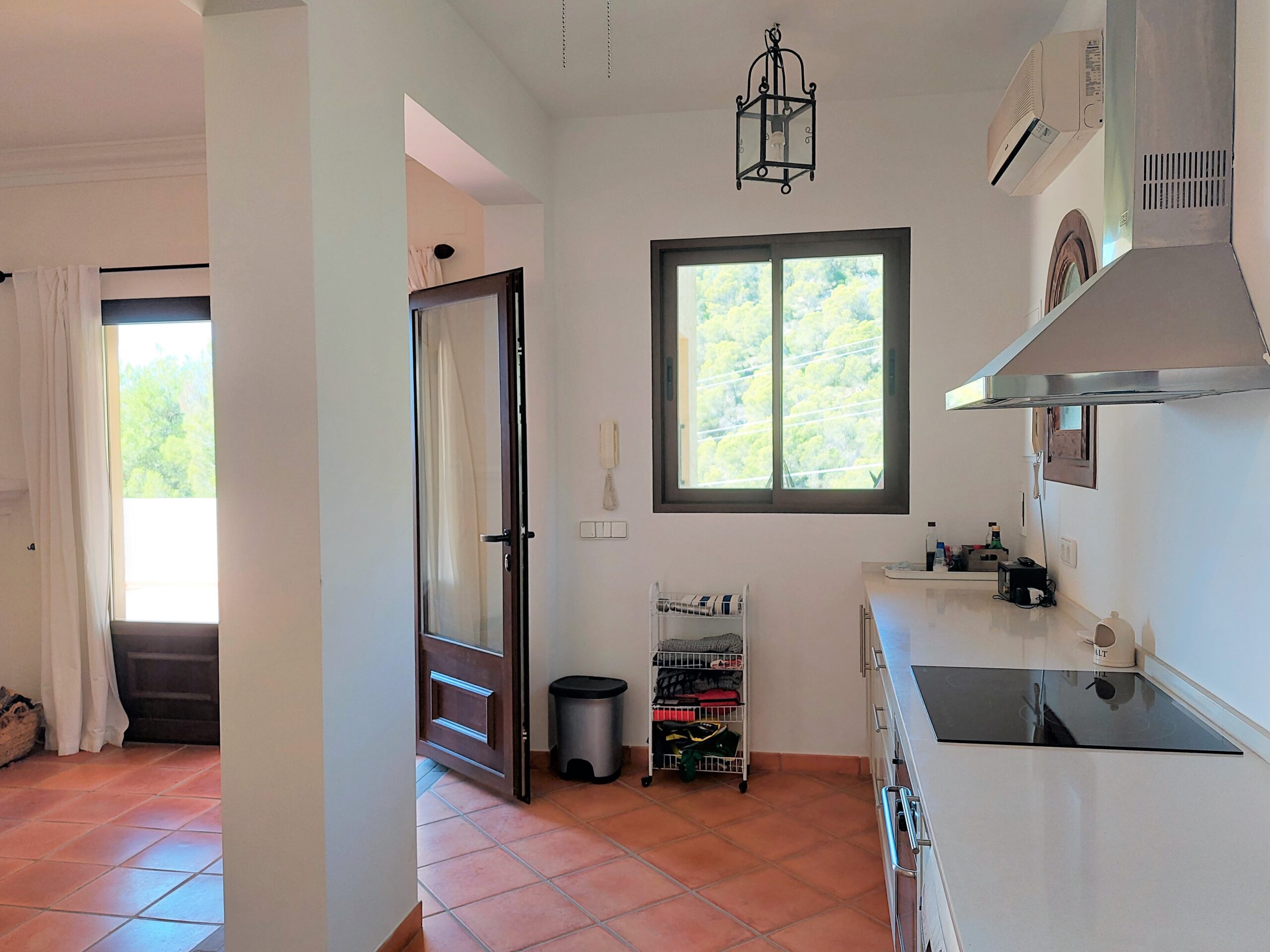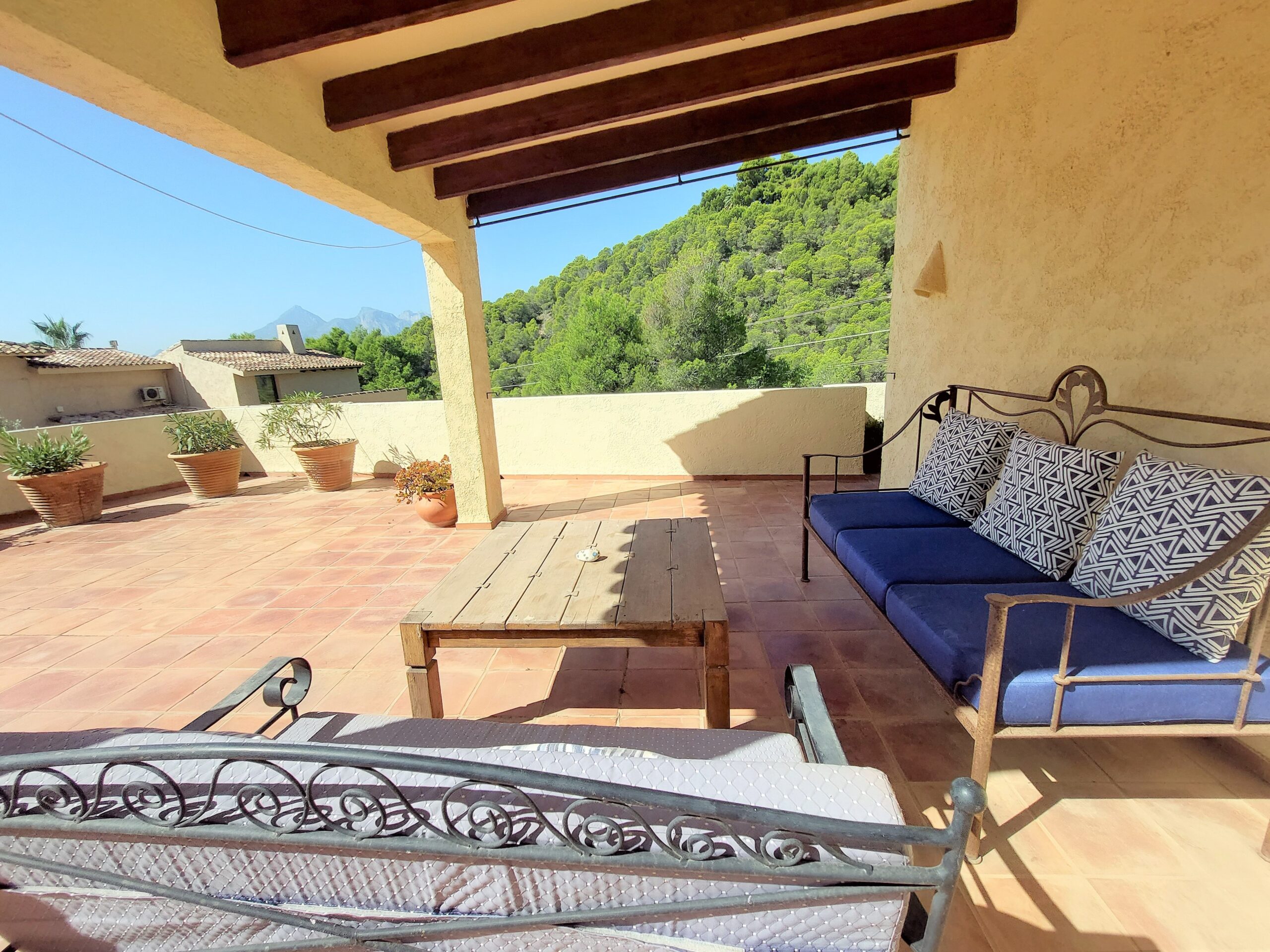 W tym otoczeniu natury i bliskości Altea la Vella, willa oferuje zarówno prywatność, jak i spokój. Główny dom posiada salon z kominkiem, otwartą kuchnię i dostęp do dużego tarasu. Posiada dwa podwójne pokoje i dwie łazienki, z których jedna jest typu en suite. Obie sypialnie mają bezpośredni dostęp do tarasów. Taras biegnie wzdłuż domu, więc jest bardzo wszechstronny, oferuje zarówno słońce, jak i cień, miejsca rekreacji, grill, przestrzenie do relaksu i czytania lub delektowania się śniadaniem lub lunchem, zawsze z bezpośrednim dostępem do domu lub sypialni, oraz z pięknym widokiem na Sierra w Altea La Vella.