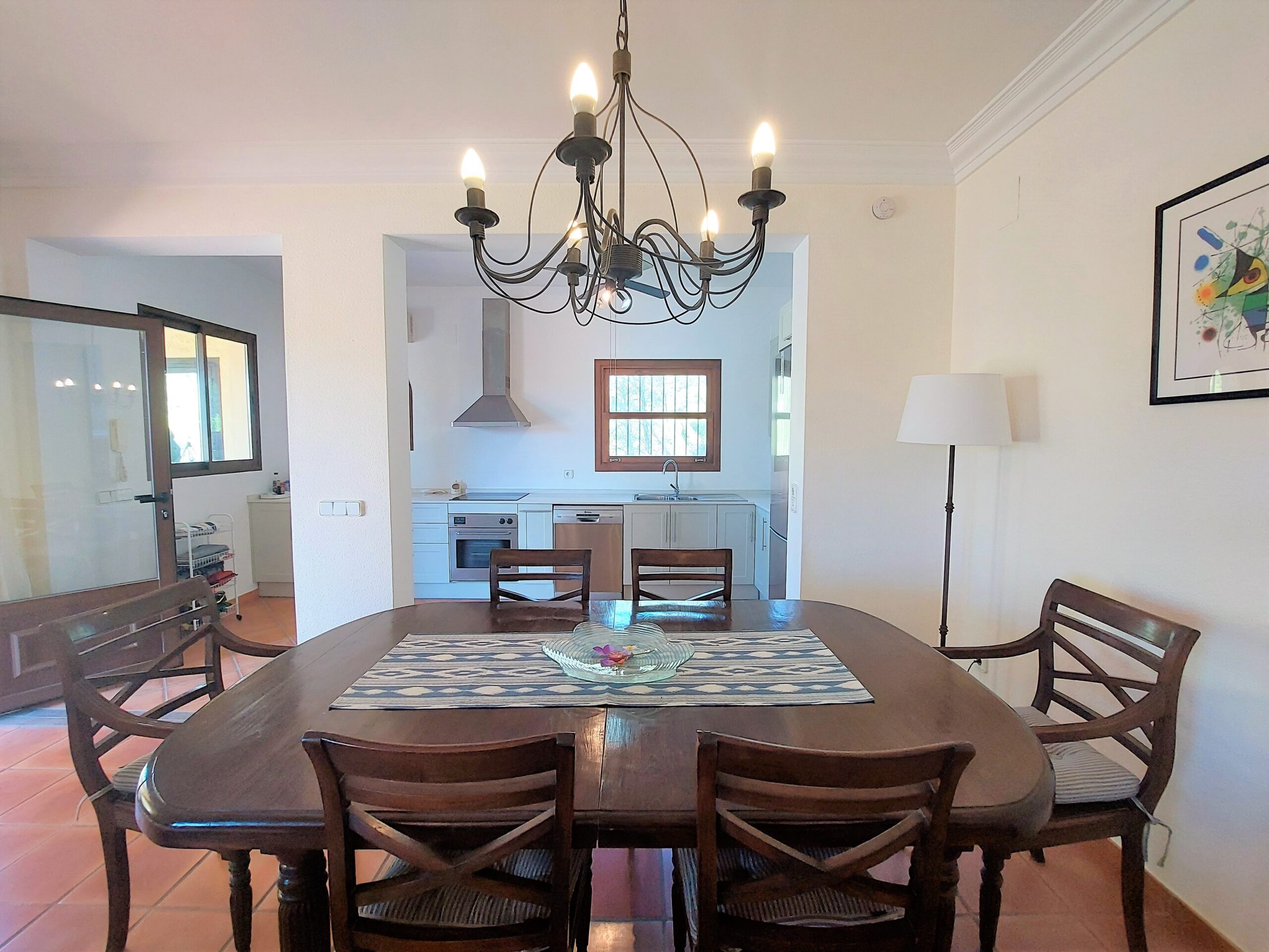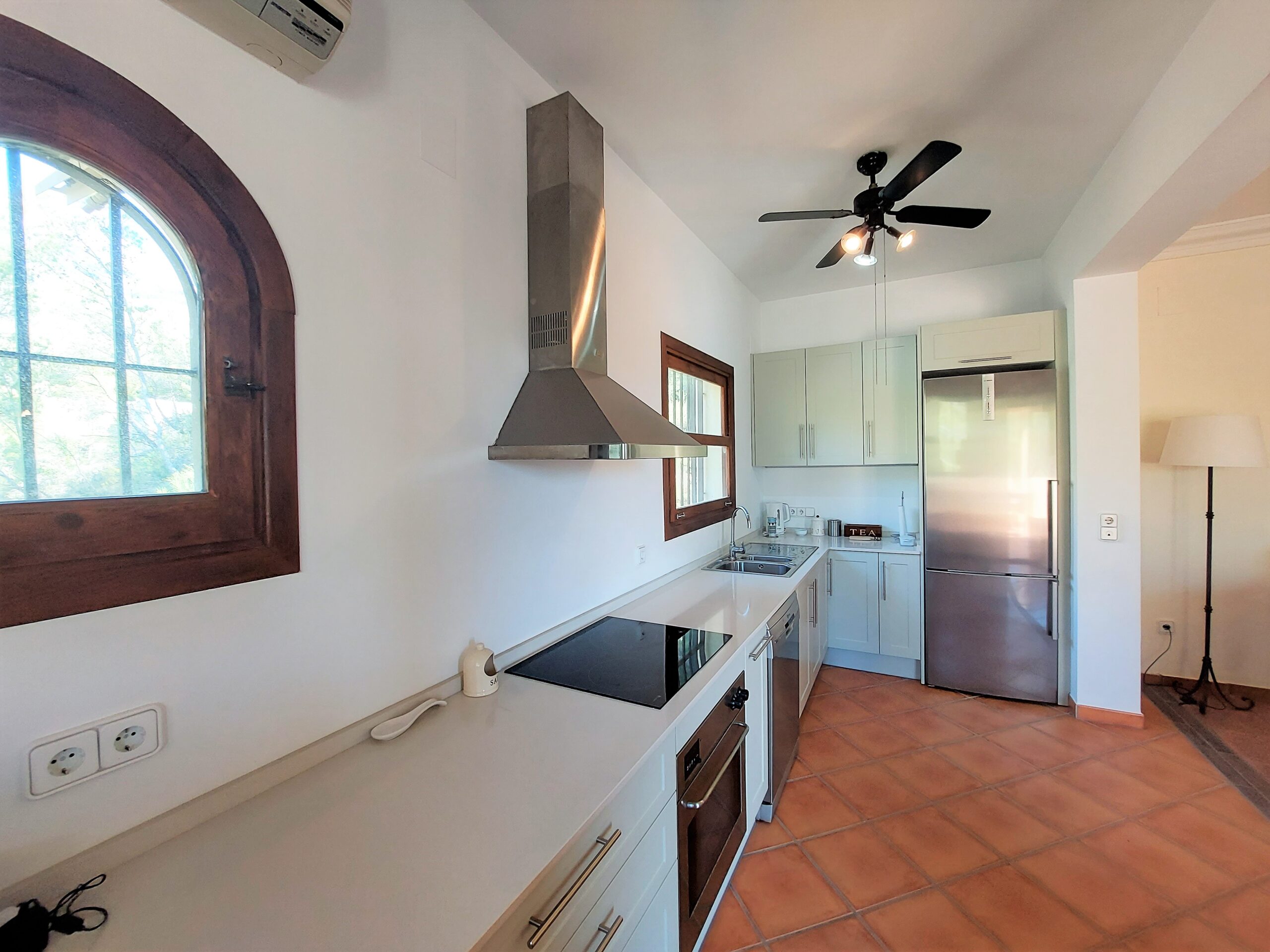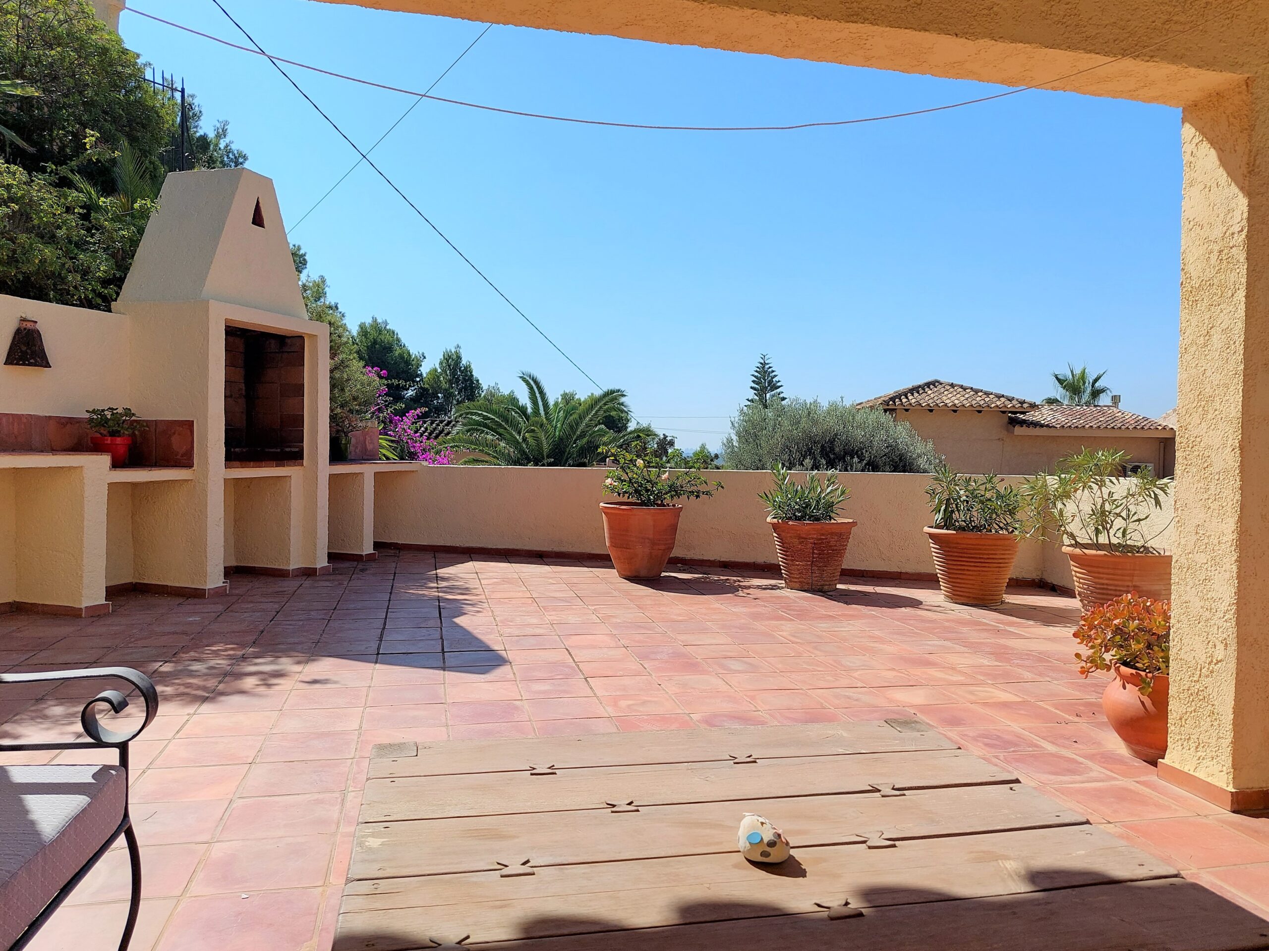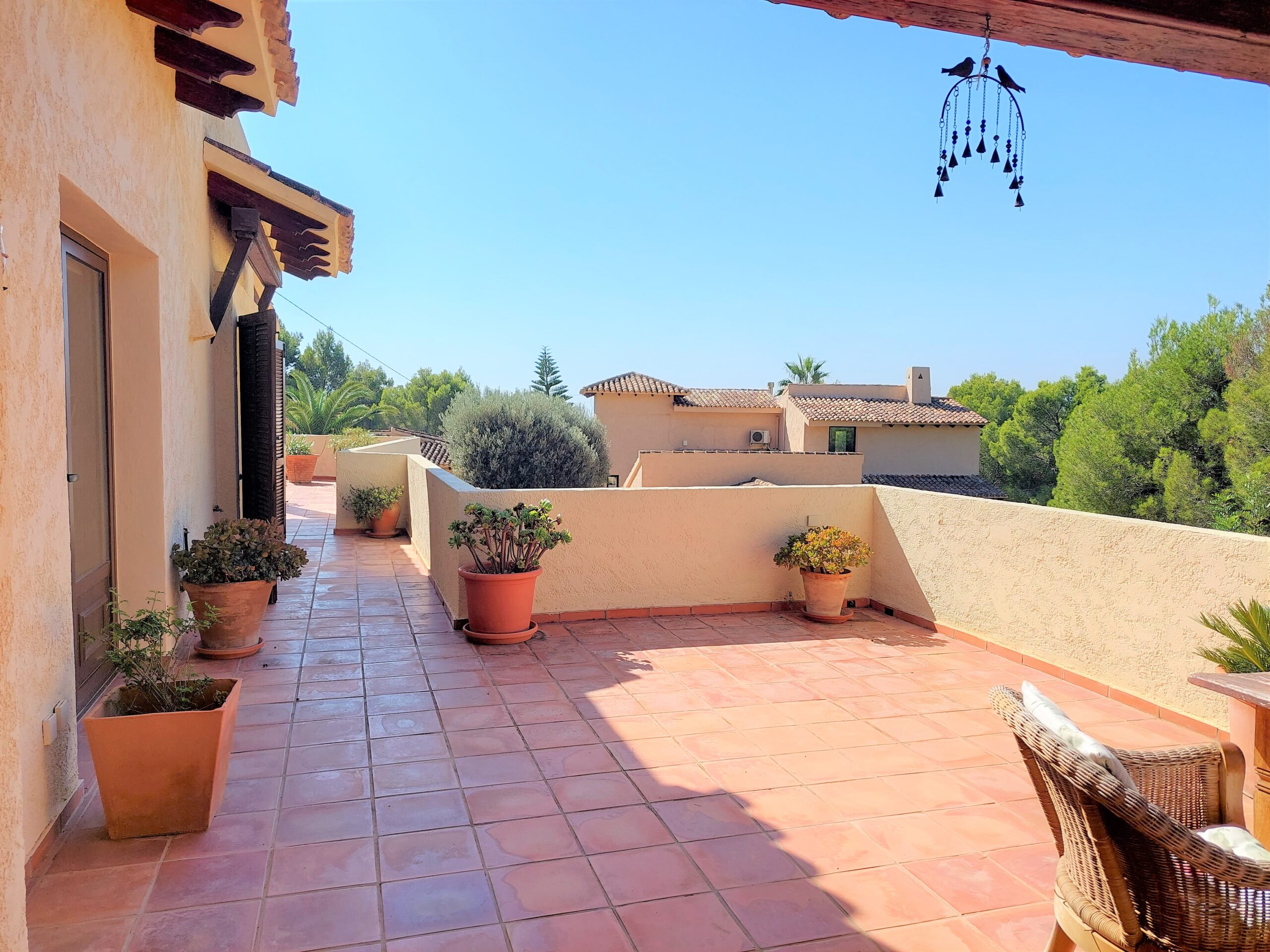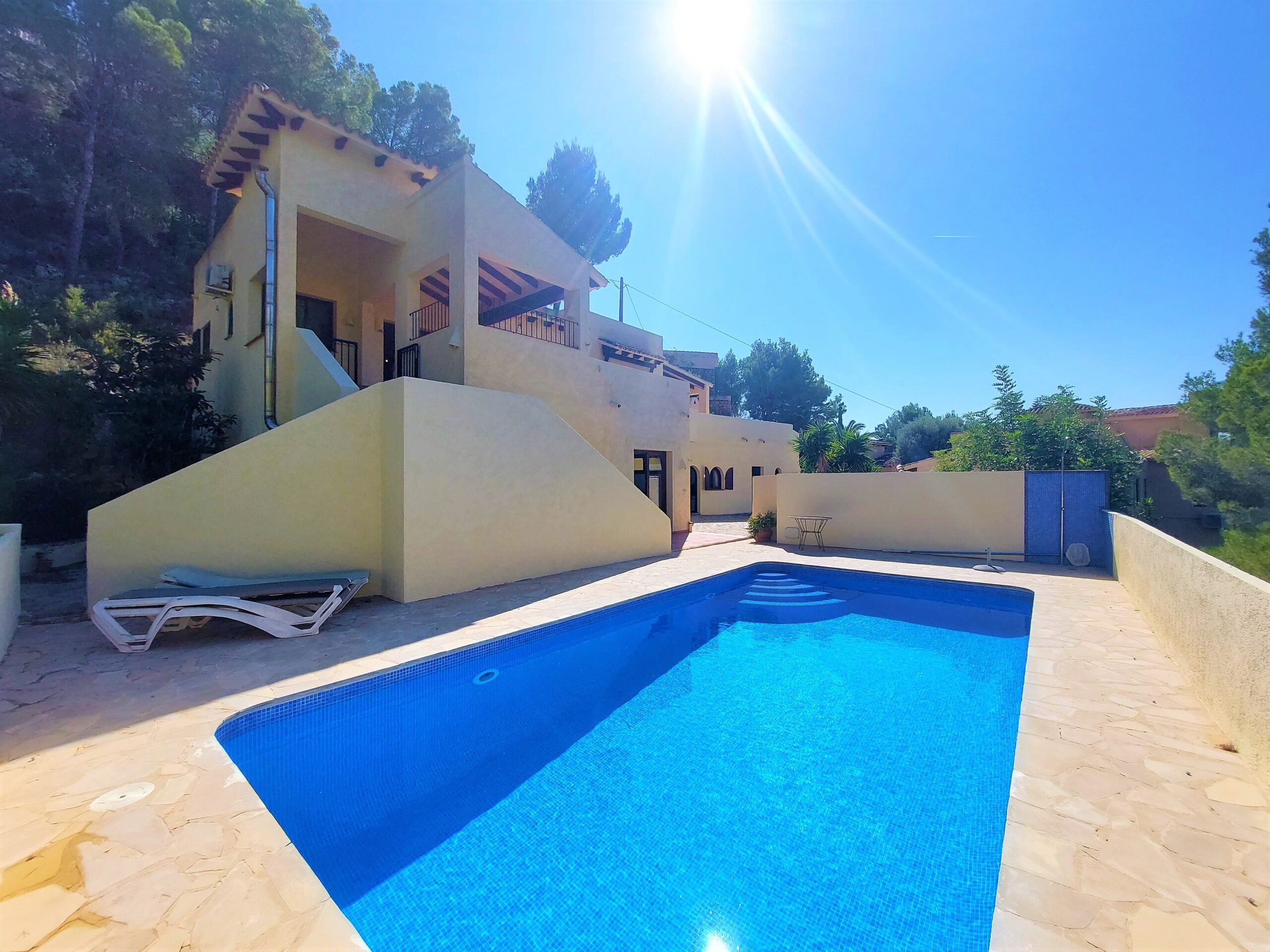 W tym otoczeniu natury i bliskości Altea la Vella, willa oferuje zarówno prywatność, jak i spokój. Główny dom posiada salon z kominkiem, otwartą kuchnię i dostęp do dużego tarasu. Posiada dwa podwójne pokoje i dwie łazienki, z których jedna jest typu en suite. Obie sypialnie mają bezpośredni dostęp do tarasów. Taras biegnie wzdłuż domu, więc jest bardzo wszechstronny, oferuje zarówno słońce, jak i cień, miejsca rekreacji, grill, przestrzenie do relaksu i czytania lub delektowania się śniadaniem lub lunchem, zawsze z bezpośrednim dostępem do domu lub sypialni, oraz z pięknym widokiem na Sierra w Altea La Vella.